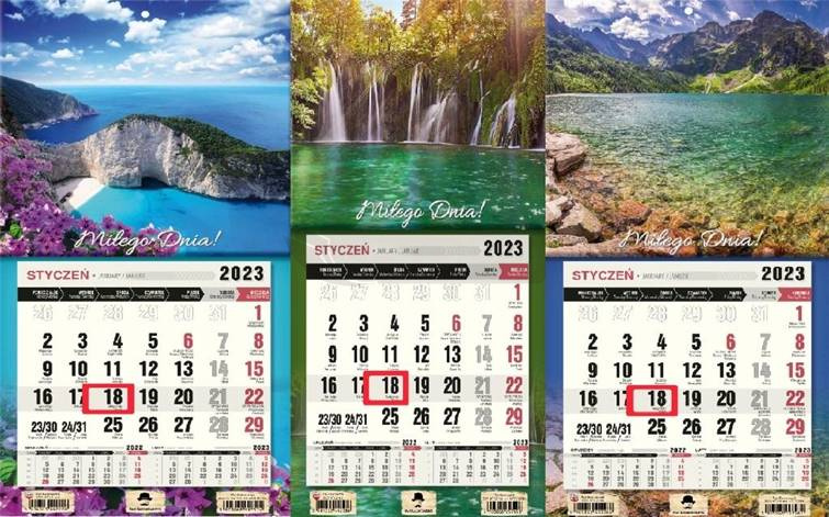 Kalendarz 2023 Trójdzielny jednodzielny mini MIX