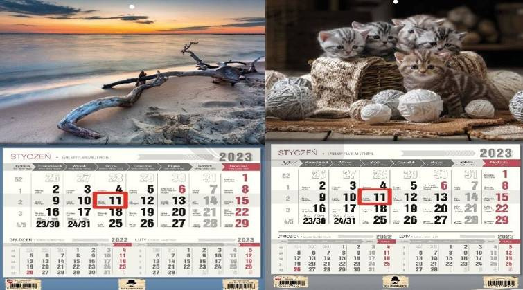 Kalendarz 2023 Trójdzielny jednodzielny MIX