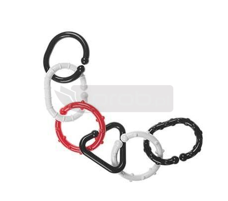 Ogniwa służące do łączenia oraz mocowania zabawek przy łóżeczku, wózku czy macie edukacyjnej. Czarno-biała kolorystyka idealnie stymuluje zmysł wzroku niemowlaka. Dzięki różnorodnym wypustkom nadają się również do ćwiczeń integracji sensorycznej.