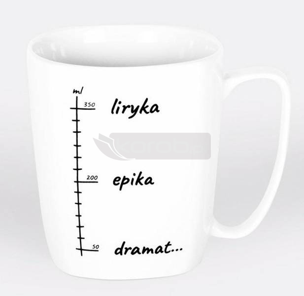 Kubek ceramiczny biały Liryka, epika, dramat...