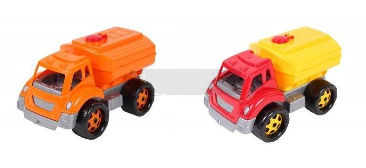 Wykonany jest z mocnego, bezpiecznego tworzywa sztucznego. Zabawkowa ciężarówka na benzynę TechnoK jest dostępna w różnych kolorach: ciężarówka na benzynę z czerwoną kabiną i żółtym zbiornikiem lub jasnopomarańczowa.