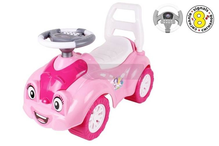 Autko wyposażone jest w kierownicę na baterie, która wydaje wiele dźwięków oraz melodii.