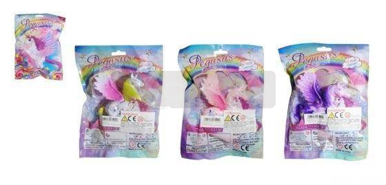 Plastikowy konik jednorożec w zestawie z grzebieniem do czesania długiej grzywy. Zabawka dla dzieci od 3 lat. Podane wymiary są wymiarami opakowania. Produkt zapakowany w kolorowy worek.