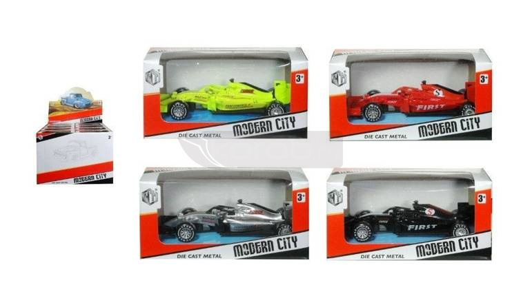 Plastikowo metalowy sportowy samochód wyścigówka do rozegrania niejednego wyścigu. Zbierz całą kolekcję aby ścigać się z przyjaciółmi albo rodzeństwem. Produkt dla dzieci od 3 lat. Zabawka zapakowana w kartonowe opakowanie z przezroczystym okienkiem. Podane wymiary są wymiarami opakowania.