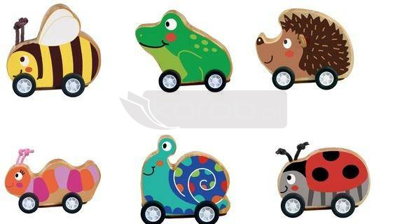 Śliczny drewniany samochód w kształcie ulubionego zwierzątka - Jeża,Ślimaka, Żaby itp., który, szybko stanie się idealnym przyjacielem we wczesnym etapie rozwoju dziecka. Samochodzik wykonany jest w prostym, ale uroczym designie. Doskonali zdolności motoryczne i koordynację ruchową. Dzięki niemu dzieci uczą się chwytać oraz przesuwać różne przedmioty. Samochód współpracuje z systemem pull-back. Dociśnij kołami do ziemi i pociągnij do tyłu. Kiedy puścisz, zabawka nagle wystrzeli do przodu! Możemy też rozpocząć zabawę w wyścigi kilku samochodzików, wygrywa ten, który pojedzie najdalej. Samochodzik wykonany jest z drewna wysokiej jakości, co bardzo wydłuża żywotność, ponadto ma zaokrąglone krawędzie i przyjemną gładką powierzchnię, dzięki czemu jest miły w dotyku. Zabawa gwarantowana!