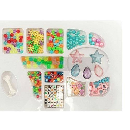 Zestaw kolorowych koralików, dzięki któremu mała dziewczynka samodzielnie będzie mogła zaplanować, stworzyć i użytkować własną biżuterię. Z koralików powstają łańcuszki, zawieszki, kolczyki, bransoletki, naszyjniki, pierścionki. Spersonalizowana biżuterię, można podarować mamie, babci lub najlepszej przyjaciółce. Takie kreatywne spędzanie czasu sprzyja rozwojowi i wspomaga kreatywne myślenie. W zestawie znajdują się także kolorowe spineczki.