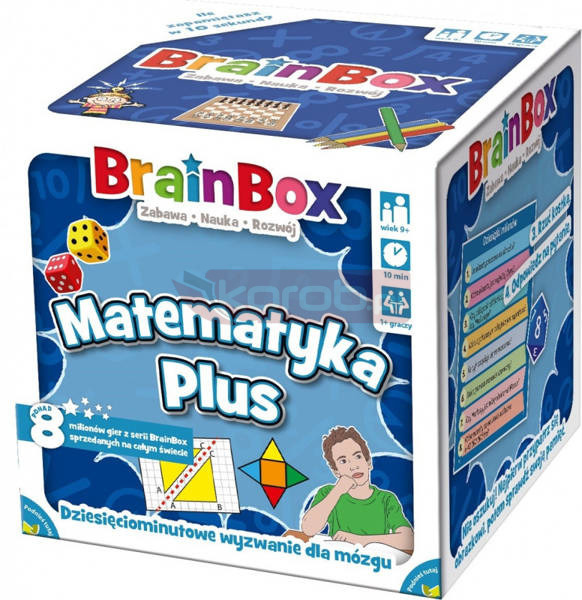 Twojemu dziecku niestraszne są podstawowe pojęcia matematyczne i szukasz czegoś, co pomoże mu nadal rozwijać wiedzę? BrainBox - Matematyka Plus to kolejny etap przygody w świecie liczb! Zajrzyj do pudełka i odkryj 55 kart służących do dynamicznej zabawy, a jednocześnie poszerzających wiedzę dotyczącą liczb pierwszych, kwadratowych, działań pisemnych, geometrii przestrzennej czy zaawansowanych miar i wag.