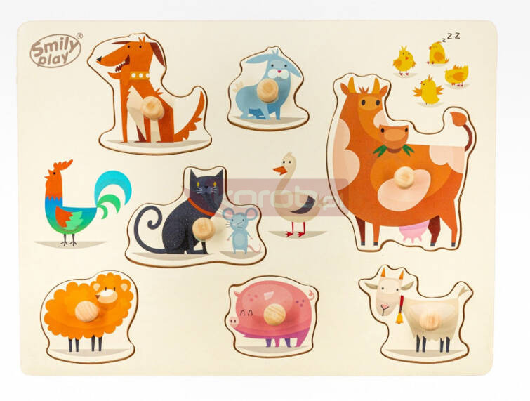- Puzzle można układać w specjalnie wyprofilowanych miejscach na przystosowanej do tego tablicy. Każdy element układanki posiada uchwyt, dzięki któremu dziecku łatwiej będzie układać puzzle.