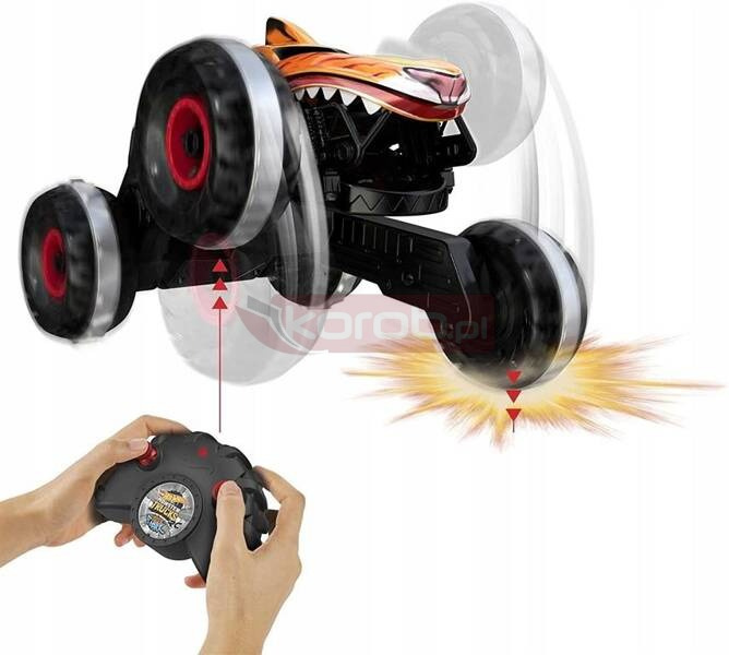 Zdalnie sterowany Hot Wheels Monster Trucks HW Tiger Shark porusza się po terenie jak niebezpieczny drapieżnik i dzięki technologii HW Terrain Stomp pokonuje każde podłoże, skały, trawę i wiele więcej Ten Tiger Shark zachwyca swoim innowacyjnym wzornictwem i ponadwymiarowymi oponami Tread Attack Ten wyjątkowo szczegółowy pojazd w skali 1:15 może być obsługiwany w całości za pomocą pilota zdalnego sterowania, ładowanie przez USB i osiąga prędkość do 9,7 km/h Dzieci i fani Monster Trucks Live mogą przedstawić swoje ulubione sceny akcji Tiger Shark z programu. Dzięki częstotliwości 2,4 GHz ciężarówka może być używana równolegle z innymi zdalnie sterowanymi pojazdami (dodatkowe pojazdy są sprzedawane oddzielnie) Zdalnie sterowane Hot Wheels Monster Trucks HW Tiger Shark to fantastyczny prezent dla wszystkich fanów zdalnie sterowanych pojazdów i dzieci od 4 lat