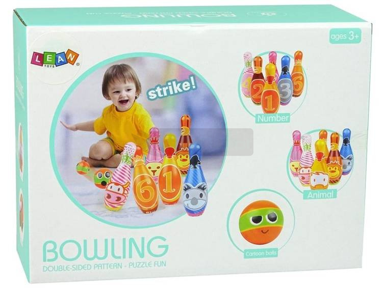 Każdy z kręgli ma naklejoną liczbę od 1 do 6 oraz zwierzę na każdym z nich. Małpka, krówka oraz koty w kolorowym otoczeniu zaciekawią i zwrócą uwagę malucha. Zachęci go to do gry. Wszystko wykonane jest z miękkiej pianki, dlatego zabawka jest bezpieczna nawet dla najmłodszych.