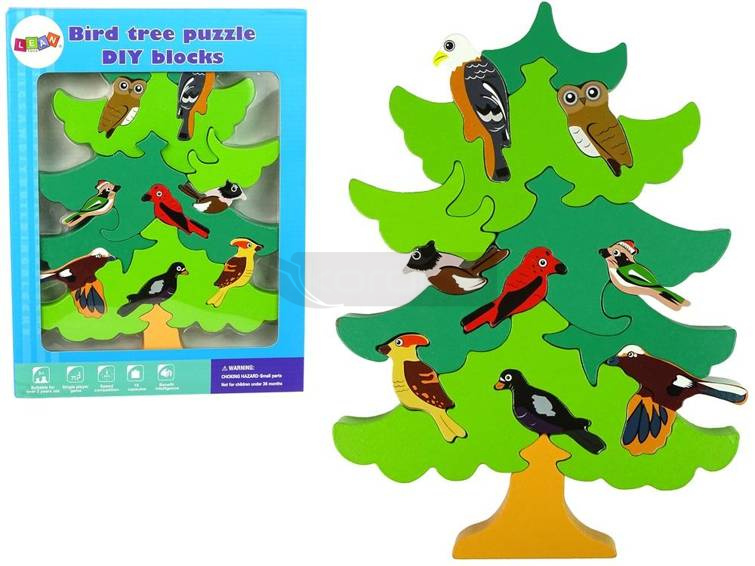 Drewniane klocki Drzewo, ptaki leśne