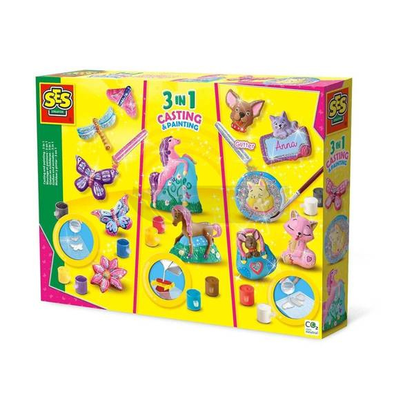 Jeśli kochasz motyle, brokat, konie i gipsowe formy, ten zestaw jest naprawdę dla Ciebie. Za pomocą tego zestawu foremek i farb 3 w 1 możesz wykonać gipsowe motyle, konie i inne szczęśliwe zwierzęta. Gdy formy stworzeń wyschną, możesz je pomalować dwunastoma kolorami farby. Możesz je jeszcze upiększyć, posypując je brokatem.
