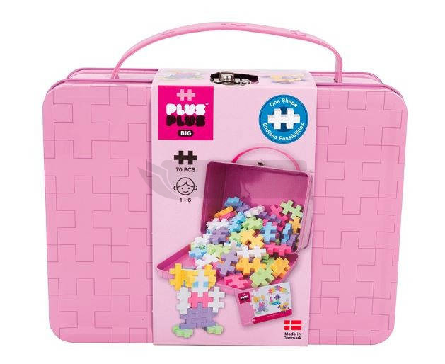 Metalowa walizeczka Plus-Plus zawiera wszystko, czego potrzebujesz, aby zacząć korzystać z Plus-Plus BIG. Zestaw zapakowany jest w metalowe pudełko do przechowywania, które świetnie sprawdzi się w podróży. Przewodnik zawiera instrukcje krok po kroku dotyczące budowania płaskich i trójwymiarowych konstrukcji - zwierząt, ludzi, budynków i nie tylko! Zestaw zawiera 70 elementów w pastelowych kolorach.