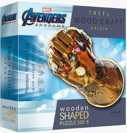 Seria drewnianych układanek, które składają się z 500+5 elementów jest idealna dla wszystkich miłośników puzzli! Po ułożeniu, powstanie obrazek o wymiarach 28,3x51,9 cm przedstawiający Rękawicę Nieskończoności. Układanka została wykonana z drewna, a opakowanie przyjazne środowisku w całości z tektury. Puzzle zawierają nieregularne elementy oraz 70 figurek w wyjątkowym kształcie.