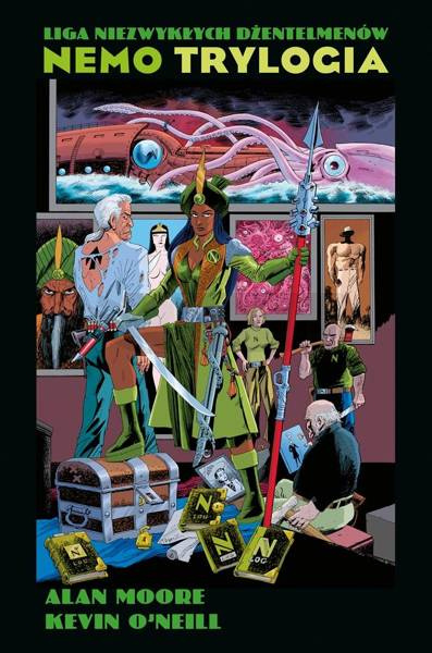 "Nemo. Trylogia" to zbiorcze wydanie trzech opowieści znakomitego duetu autorskiego, Alana Moore'a i Kevina O'Neilla, którzy brawurowo przedstawiają przygody córki legendarnego kapitana Nemo, członka Ligi Niezwykłych Dżentelmenów. Janni Dakkar znana jest przede wszystkim jako dziedziczka spuścizny swojego ojca i nowa kapitan "Nautilusa", okrętu siejącego postrach wśród ludzi morza. W opowieściach zebranych w tym tomie poznajemy bohaterkę na przestrzeni wielu lat. W pierwszej z nich, zatytułowanej "Serce z lodu", przemierzymy z księżniczką Antarktydę śladami ostatniej wyprawy jej ojca. Trafimy w okolice, o których pisali Edgar Allan Poe ("Opowieść Artura Gordona Pyma z Nantucket") oraz Howard Phillips Lovecraft ("W Górach Szaleństwa"). W "Berlińskich różach" akcja przenosi się do roku 1941. Janni wraz z mężem Jackiem Strzałą spieszą na ratunek córce i trafiają w samo serce Rzeszy. W upiornej metropolii czekają na nich nie tylko wojska wroga, ale także pozostałości niesławnych Bohaterów Zmierzchu, niemieckiej odpowiedzi na Ligę Niezwykłych Dżentelmenów. Ostatni rozdział trylogii, noszący tytuł "Rzeka duchów", ukazuje osiemdziesięcioletnią Janni Nemo w roku 1975. Bohaterka wyrusza "Nautilusem" na swoją ostatnią wyprawę w górę Amazonki, aby jeszcze raz zmierzyć się z dawnym wrogiem. Czy jednak ów cień z przeszłości istnieje naprawdę, czy to tylko jeden z duchów towarzyszących starej kapitan? Scenarzystą serii jest słynny brytyjski twórca Alan Moore, autor takich bestsellerów jak "Strażnicy", "Promethea", "V jak vendetta", "Providence". Rysunki są dziełem stałego grafika cyklu, Kevina O'Neilla ("Nemezis the Warlock", "Marshal Law"), zdobywcy wielu wyróżnień komiksowych, w tym dwóch Nagród Eisnera. Lektura trylogii nie wymaga dokładnej znajomości fabuły "Ligi Niezwykłych Dżentelmenów". Album zawiera materiały wydane pierwotnie jako "Nemo: Heart of Ice", "Nemo: Roses of Berlin" i "Nemo: River of Ghosts". Komiks dla dorosłych.