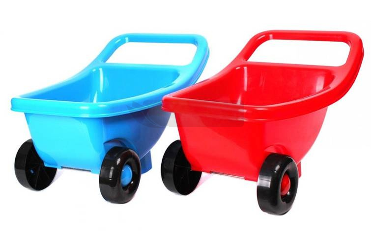 Poręczna taczka dobrej wielkości do przewożenia zabawek i innych rzeczy dla naszych najmłodszych kupujących. Dzięki dwukołowej podstawie i dwóm nóżkom zabawka jest dobrze wyważona, a szeroka rączka umożliwia ciągnięcie taczki dwiema lub jedną ręką.