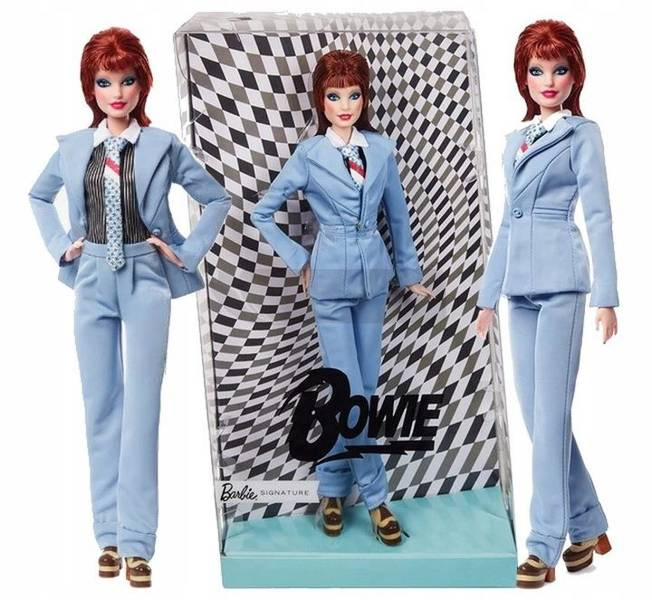 Barbie przedstawia drugą lalkę kolekcjonerską na cześć najlepszego popowego kameleona, Davida Bowie. Lalka Barbie Davida Bowie jest w pełni ruchoma i jest ubrana w autentyczną replikę pudrowoniebieskiego kostiumu, który Bowie nosił w teledysku „Life on Mars”. Kultowe detale to koszula w prążki z nadrukiem foliowym, wyrazisty krawat i buty na platformie. Odważny niebieski cień do powiek i fryzura inspirowana erą glam Bowiego z lat 70. dopełniają całości. Ta kolekcjonerska lalka Barbie David Bowie w opakowaniu z możliwością wyeksponowania jest świetnym prezentem zarówno dla fanów Bowie, jak i Barbie.