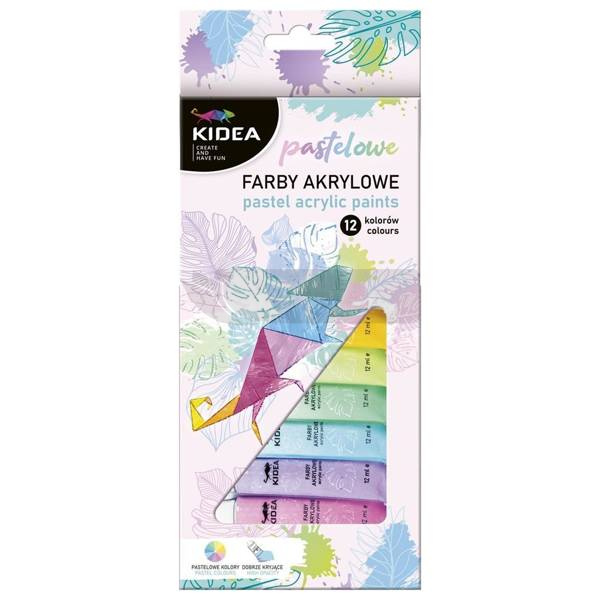 Farby akrylowe pastelowe 12 kolorów KIDEA