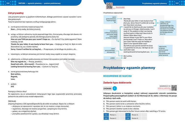 Repetytorium zawiera wszystkie działy tematyczne, które wymagane są w programie nauczania wraz z szerokim zakresem słownictwa, a także komplet zagadnień gramatycznych. Zadania w książce pozwalają przećwiczyć zdobyte umiejętności w praktyce i utrwalić je, a ćwiczenia typu egzaminacyjnego umożliwiają zapoznanie się z rodzajami zadań, jakie pojawią się w arkuszu egzaminacyjnym na maturze. Uwzględniono też ćwiczenia rozumienia ze słuchu - zadania tego typu znajdują się pod kodem QR. Uzupełnieniem jest klucz odpowiedzi.