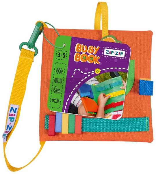 Ćwicz swoje pierwsze umiejętności motoryczne z BusyBook. Guziki, fastex, rzepy, sznurowanie. Jedna zabawka - mnóstwo zapięć!