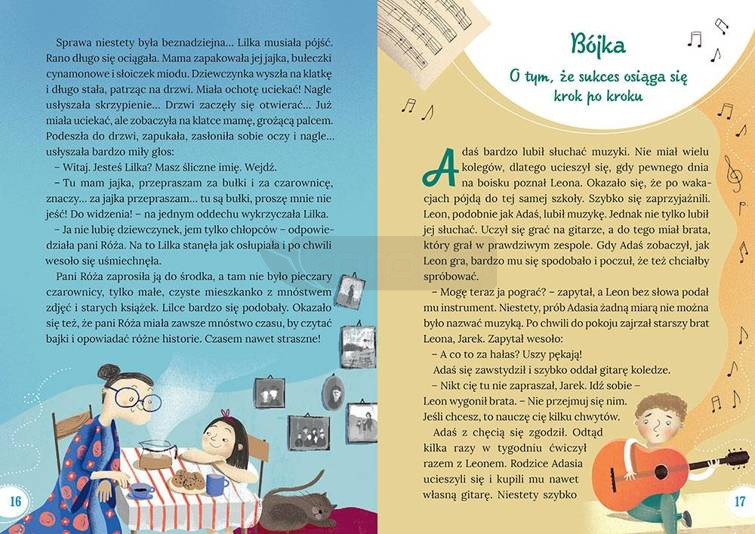 Historie zawarte w Inspirujących bajkach pomagają dzieciom znaleźć wiarę w siebie, uwierzyć w swoje talenty, pokazują, jak ważna jest wytrwałość, cierpliwość i konsekwencja, uświadamiają, że empatia, wrażliwość i wyrozumiałość są kluczem do budowania trwałych, szczerych przyjaźni. Napisane są pięknym, literackim językiem, ich akcja toczy się wartko, a sympatycznych bohaterów - zwierzątka lub dzieci w wieku małych czytelników - polubi każde dziecko. Książka sprawdzi się też przy wspólnym, głośnym czytaniu, i na pewno stanie się okazją do niejednej ciekawej rozmowy na ważne tematy.