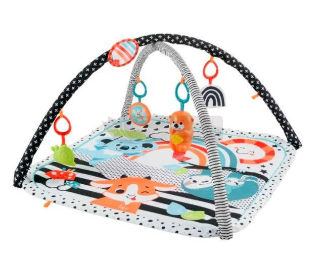 Muzyczna mata edukacyjna 3 w 1 Rośnij ze mną od Fisher-Price zapewni mnóstwo radosnych chwil zabawy. Niemowlęta mogą wyciągać rączki, trącać i chwytać 5 zabawek aktywizujących z zaczepami, takich jak lusterko, miękki jeżyk-grzechotka, ślimaczek-gryzaczek bez bisfenolu A, szeleszcząca tęcza oraz wyderka z muzyką i światełkami. Wyderka odtwarza 15 minut muzyki i świeci delikatnym światłem, zapewniając doskonałą zabawę na macie i poza nią. Gdy maluch podrośnie, możesz odłączyć dwa łuki, aby mógł bawić się na brzuszku na dużej, wygodnej macie i podnosić się na rączkach, ćwicząc mięśnie szyi i tułowia. Kontrastowe kolory maty pomagają rozwijać wzrok dziecka.