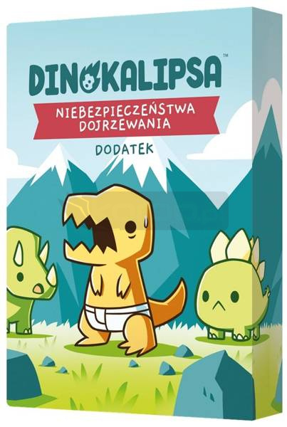 Dinokalipsa: Niebezpieczeństwa dojrzewania to rozszerzenie wprowadzające 54 zupełnie nowe karty z katastrofami rodem z piekła nastoletnich lat. Dzięki nim zyskasz okazję, by dowiedzieć się (lub przypomnieć sobie!) jakie to uczucie, gdy Twoja praca domowa zostanie zjedzona przez welociraptora, włosy zaczynają Ci rosnąć na calutkim ciele, a do tego obrywasz piłką w twarz podczas gry w zbijaka. Głowa do góry, wszyscy przez to przechodziliśmy!
