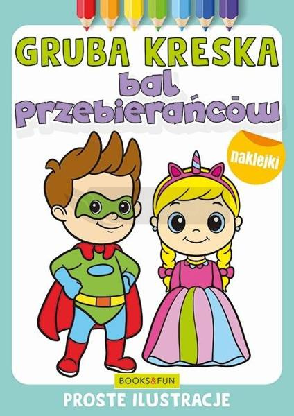 GRUBA KRESKA to kolekcja kolorowanek z prostymi rysunkami skierowana głównie do najmłodszych dzieci. Gruby obrys ułatwi kolorowanie i zapewni świetną zabawę. Nasza seria została przygotowana tak, aby ułatwić dzieciom ćwiczenie ręki. W środku czeka na nie niespodzianka naklejki, które podpowiedzą maluchom, jakich mogą używać kolorów.
