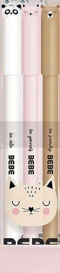 Zestaw 3 sztuk długopisów ścieralnych. Niebieski wkład. Zakończony gumką. Ściera nie pozostawiając śladów. Skuwka z uszkami zwierzaków z serii BB Friends. Idealny zestaw dla pierwszoklasisty i na prezent.