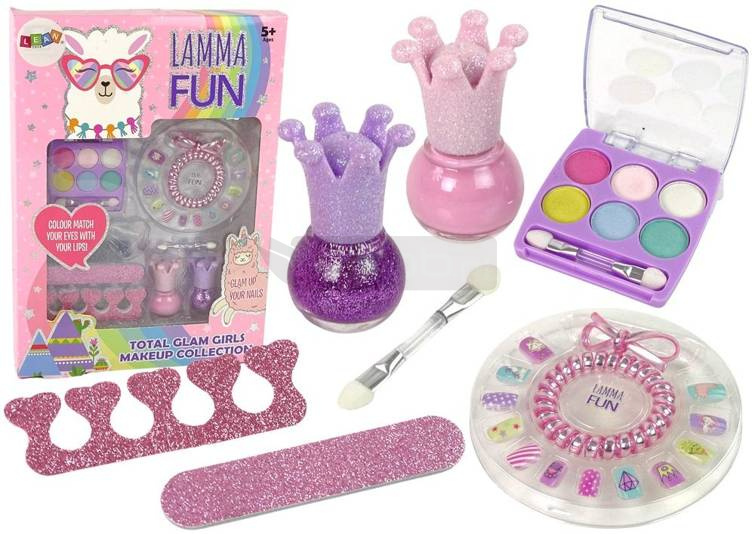 Zestaw Do Makijażu Wesoła Lama Wszystko czego potrzebuje mała dama ! LAMMA FUN Zestaw kosmetyków to idealny prezent dla każdej dziewczynki. W pewnym momencie mała dziewczynka zaczyna interesować się wyglądem, makijażem i modą to najwyższa pora na takie zestawy. Nauczy się podstaw makijażu, ale i rozwinie funkcje ręki. Wykonanie makijażu wymaga precyzji. Zabawa rozwinie u Twojego dziecka kreatywność i wyobraźnię. Kosmetyki są zaprojektowane tak, aby były bezpieczne i nieszkodliwe, nie zawierają parabenów. Aby zmyć makijaż, wystarczy zetrzeć chusteczką go lub wacikiem z mydłem i ciepłą wodą. Elementy zestawu piękności LAMMA FUN: - Dwa wodne lakiery do paznokci w ślicznym opakowaniu w koroną .Jeden w kolorze pastelowego różu, drugi brokatowy. - Pędzelki do malowania - Brokatowy pilniczek do paznokci - Zestaw 6 cieni do powiek z pędzelkiem w zamykanej paletce - Separator do paznokci. - Gumka Do włosów Invisible - Zestaw 12 samoprzylepnych tipsów - Błyszczyk Wymiary opakowania: 33 cm x 23,5 cm x 4 cm Zestaw piękności wyprodukowany jest zgodnie z normą EN 71, oznaczono go również certyfikatem CE. Zestaw przeznaczony jest dla wszystkich małych księżniczek powyżej 5. roku życia.
