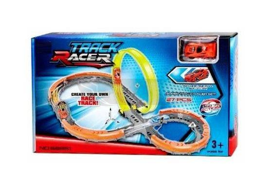 Zabawka tor dla dzieci z pętlą. Zestaw składa się z 27 elementów i zawiera 1 auto wyścigowe z napędem pull-back. Produkt zapakowany w kartonowe opakowanie z przezroczystym okienkiem. Produkt dla dzieci od 3 lat. Podane wymiary są wymiarami opakowania.