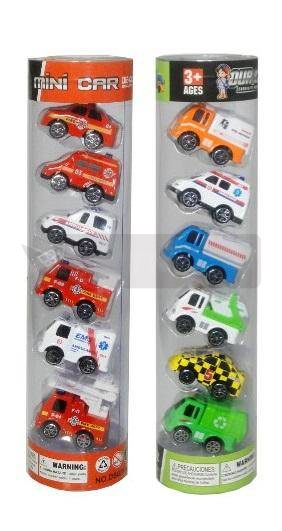 Zestaw kolorowych mini pojazdów dla dzieci. Pojazdy budowlane lub ratunkowe. Autka są metalowo-plastikowe.#&Produkt zapakowany w plastikową tubę.