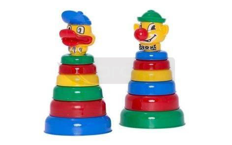 Piramida to podstawowa zabawka edukacyjna, ucząca umiejętności wyznaczania konsekwentnych serii, składająca się z sześciu krążków, które dziecko układa jeden na drugim. Wesołym akcentem jest główka w kształcie Pajacyka lub Kaczorka. Zabawka przeznaczona dla dzieci od 10 miesiąca życia, rozwija zdolności manualne.