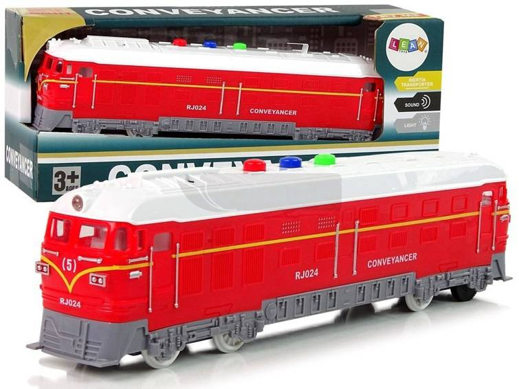 Pociąg 1:32 Napęd Czerwony Dźwięk Światła Prezentowany pociąg to prawdziwa frajda dla małego maszynisty i kolekcjonera. Wcielanie się w różne role to jedno z ulubionych zajęć naszych pociech. Od teraz zawód maszynisty jest w zasięgu ręki. Opakowanie z przezroczystą witrynką sprawia, że zabawka nadaje się na prezent. Zabawka posiada efekty świetlne oraz dźwiękowe. Po uruchomieniu przednie światło pociągu świeci się i słyszymy odgłosy pędzącego pociągu. Pozwoli rozwijać wyobraźnię dziecka i wpłynąć na prawidłowy rozwój. Wykonane w kolorystyce czerwono- białej. Dzięki zabawie najmłodsi poprawią zdolności manualne oraz koordynację. Wykonany w skali 1:32. Posiada napęd frykcyjny, wystarczy pociągnąć do tyłu i puścić, pociąg będzie jechał przed siebie. Wymiary zabawki: 24 cm x 4 cm x 7 cm Wymiary opakowania: 27 cm x 11 cm x 8,5 cm Pociąg przeznaczony jest dla dzieci powyżej 3 roku życia. Zasilany trzema bateriami AG13, w zestawie.