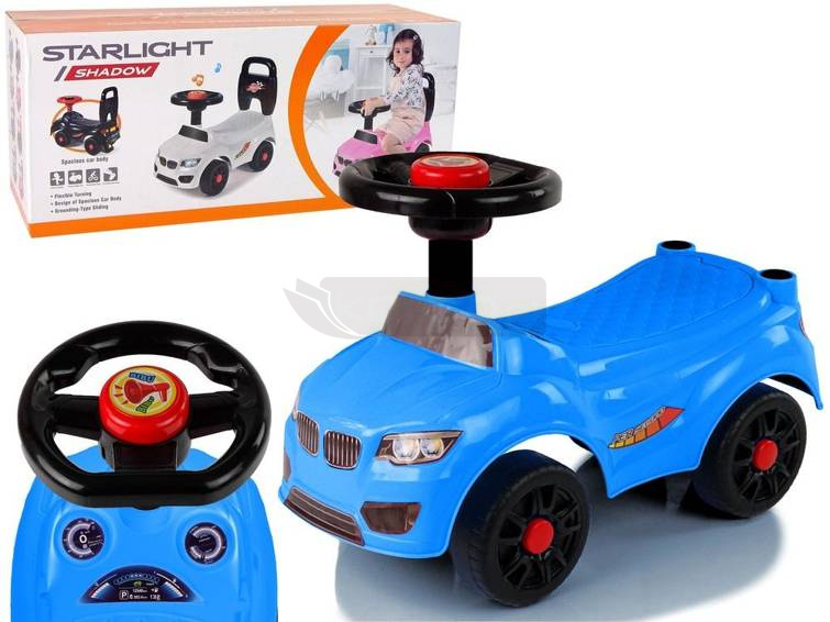 Samochód Jeździk QX-3399-2 Klakson Niebieski Jeździk to wielofunkcyjna zabawka dla malucha. Przeznaczony dla dziecka, które potrafi samodzielnie odpychać się od podłoża nóżkami. Zabawkowy samochód będzie rosnąć razem z dzieckiem i jego umiejętnościami. Odpychacz doskonale sprawdzi się zarówno w domu, jak i na podwórku czy w ogrodzie. Wykorzystanie w codziennej zabawie prezentowanego pojazdu dla kilkulatka w ogromnym stopniu wpływa na jego rozwój. Jeździk wspiera koordynację wielu części ciałka dziecka jednocześnie, rozwijając także mięśnie, a co równie istotne - wspomagając naukę samodzielnego, stabilnego chodzenia. Jazda niebieskim samochodzikiem do odpychania pozwoli dziecku zrozumieć, czym jest prędkość, odległość czy kierunek. Dziecięcy mini pojazd został zaprojektowany z dbałością o najmniejszy szczegół. Naklejki w formie reflektorów oraz grilli sprawiają wrażenie realistycznego autka. Wykonany jest z lekkiej, plastikowej konstrukcji, która jest bardzo wytrzymała i solidna. Jeździk QX-3399-2 maluch może zabrać ze sobą na spacer. Na środku kierownicy znajduje się klakson piszczałka, która będzie informować, że mały kierowca znajduje się na drodze. Z tyłu autka znajduje się podpórka, która zapobiega przechyleniu się samochodziku do tyłu. Wymiary jeździka: 46 cm x 22 cm x 33 cm Wymiary siedziska: 12 cm x 20 cm średnica kierownicy: 16 cm średnica koła: 11 cm Wysokość od podłoża: - do siedziska: 18 cm - do kierownicy: 30 cm Wymiary opakowania: 50 cm x 22 cm x 18 cm Waga: 1,2 kg Przeznaczony dla dzieci od 18 miesiąca życia. Zgodny z normą EN71. Zabawka wykonana jest z certyfikowanego materiału.
