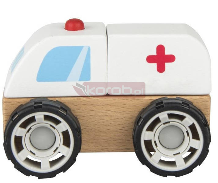Samochodzik do składania karetka wykonany z drewna pomalowanego bezpiecznymi farbami wodnymi. Maluchy uwielbiają autka a gdy dodatkowo można je rozmontować zabawa nie ma końca! Pojazd składa się z kilku elementów, które można oddzielić od niego jak klocki. Połącz elementy kilku samochodzików z tej serii aby stworzyć własny wymarzony pojazd! Zabawka absorbuje uwagę dziecka, pozwala rozwijać zdolności manualne i daje masę frajdy!