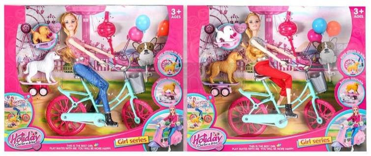 "Lalka na rowerze z pieskami to zestaw dla dziewczynek 3 lata, które uwielbiają zwierzątka. Lalka ma 29 cm wysokości i ma zginane ręce, nogi oraz dłonie. Ruchome elementy lalki układanie swojej lalki w idealnej pozycji podczas jazdy rowerem, czy zabaw z pieskami.