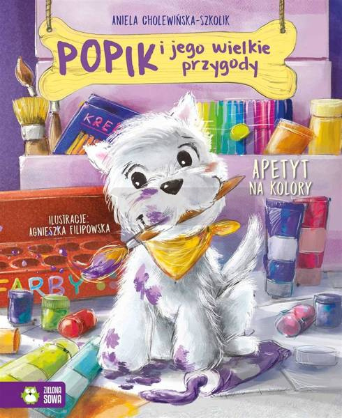 Znacie Popika? To piękny BIAŁY terierek, bardzo zadowolony ze swojego życia. Jednak gdy pewnego dnia Misia zaczyna zachwycać się KOLOROWYMI ptakami, biel nagle przestaje się podobać Popikowi Czuje się taki bezbarwny. Psiak postanawia zdobyć więcej kolorów. Tylko jak? Sięgnijcie po drugi tom przygód Popika, psiego towarzysza Misi. Tym razem poza pogonią za kolorami przed Popikiem także inne przygody: poszukiwanie piłki zagubionej wśród jabłek, wizyta u prawdziwego psa wystawowego, a nawet wyprawa na jarmark! Co jeszcze może przydarzyć się w niezwykłym psim życiu Popika?