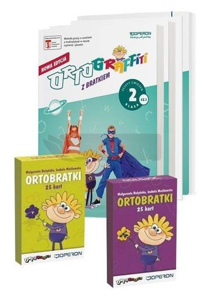 Zestaw drugoklasisty to pozycja niezbędna dla każdego ucznia klasy 2, któremu zależy na ugruntowaniu swojej wiedzy o literach i dalszym ćwiczeniu sprawności czytania i pisania. Nadal macie możliwość spotykania się z Bratkiem w jego opowieściach. Otwierają one każdy nowy rozdział i zachęcają do pracy przez zabawę. Coraz lepsze kompetencje dziecka i rosnące umiejętności przyczynią się do osiągania sukcesów w szybkim tempie, a to przełoży się również na sukcesy w nauce szkolnej. Pamiętajcie, aby codziennie znaleźć czas na spotkanie z Bratkiem. Może to być od 15 do 30 minut, najlepiej o stałej porze. Rutyna i dobre planowanie jeszcze bardziej wspomogą zapamiętywanie nowego materiału. Aby bawić się jeszcze lepiej, wykorzystajcie karty do gry - Ortobratki. Są to uniwersalne karty do gier ortograficznych. Bardzo dobrze się sprawdzają, jeżeli lubicie grać w "Czarnego Piotrusia" albo memo. Nawet nie zauważycie, kiedy reguły pisowni same wejdą do głowy. Zestaw zawiera również teczkę, w której możecie przechowywać materiały i karty pracy.