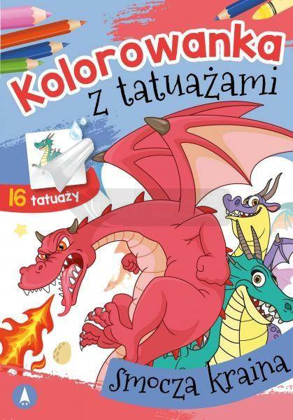 W środku: projekty do kolorowania i zestaw zmywalnych tatuaży (wzory kolorystyczne).