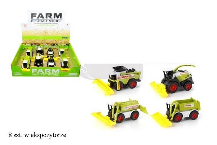 Mała zabawka kombajn dla dzieci. Posiada metalowe części. Działa na napęd cierny. Produkt zapakowany w przezroczyste opakowanie. Zabawka dla dzieci od 3 lat wysyłana losowo