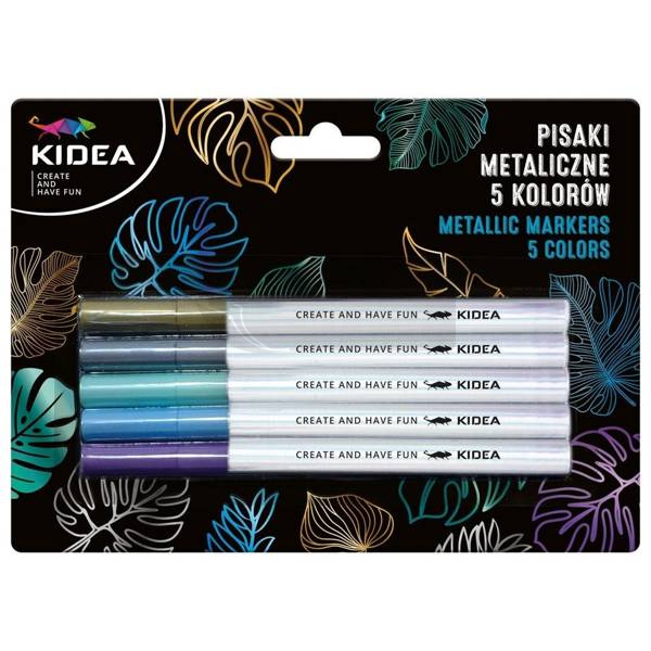 Pisaki metaliczne w 5 intensywnych kolorach fioletowym, niebieskim, zielonym, srebrnym i złotym. Chcesz, aby twoja praca plastyczna osiągnęła spektakularny efekt? Stwórz ją na ciemnym papierze. Na czarnej kartce kolory zyskują wyraźniejszy połysk oraz nabierają intensywności. Efekt WOW gwarantowany!