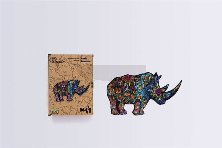 Puzzle drewniane eko 72 Rzadki nosorożec A4