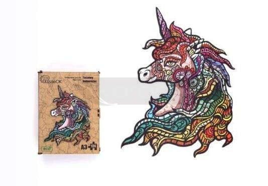 Puzzle drewniane eko 124 Tęczowy jednorożec A3