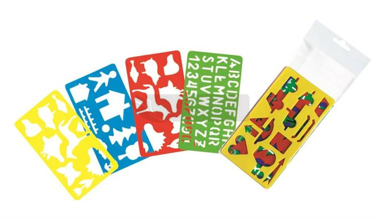 Szablony to zestaw 4 różnych plastikowych wzorników do odrysowywania. Poprzez zabawę dzieci ćwiczą umiejętności pisania i rysowania.