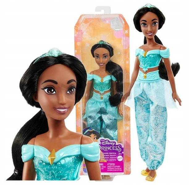 Poznaj serię niepowtarzalnych lalek Disney Princess. Inspirowana postacią z filmu animowanego „Aladyn” Disneya lalka Dżasmina jest gotowa podążać ku przygodom czekającym poza murami zamku. Lalka z punktami zgięcia jest ubrana w swoją kultową stylizację z filmu, w tym zdejmowane buciki i tiarę. Strój składa się z brokatowego topu i zdejmowanych spodni o wzorze unikalnym dla Dżasminy. Ta urocza księżniczka Disneya ma długie włosy do zabawy w czesanie i stylizację fryzur. Doskonały prezent dla dzieci, które mogą odtwarzać swoje ulubione momenty z filmu lub wymyślać własne opowieści.