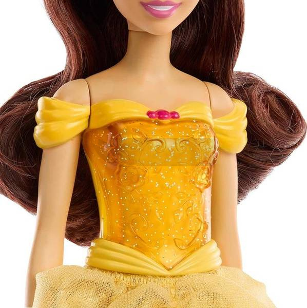 Poznaj serię niepowtarzalnych lalek Disney Princess. Inspirowana postacią z uwielbianego filmu animowanego „Piękna i Bestia” Disneya lalka Bella jest gotowa na przygody czekające poza granicami swej wioski. Lalka z punktami zgięcia jest ubrana w swoją kultową stylizację z filmu, w tym zdejmowane buciki i tiarę. Strój składa się z brokatowego topu i zdejmowanej spódniczki o wzorze unikalnym dla Belli. Ta urocza księżniczka Disneya ma długie włosy do zabawy w czesanie i stylizację fryzur. Doskonały prezent dla dzieci, które mogą odtwarzać swoje ulubione momenty z filmu lub wymyślać własne opowieści.