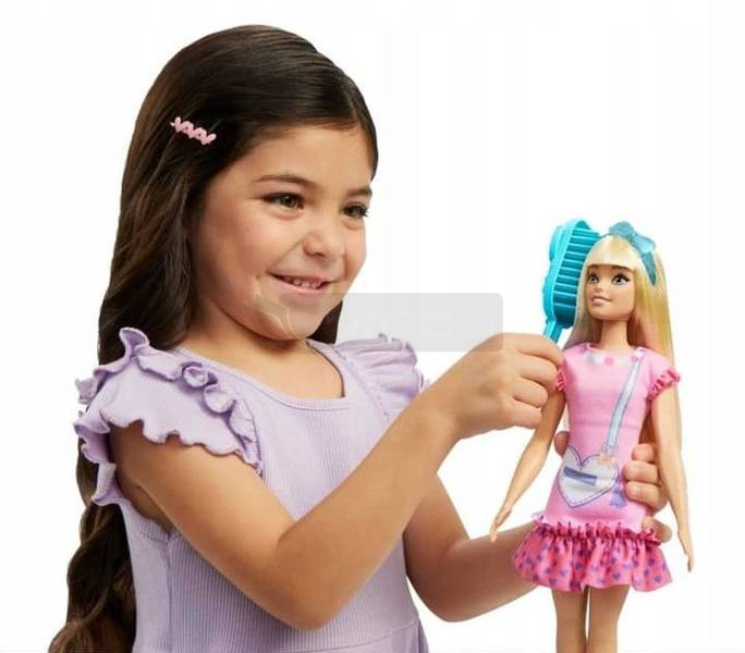 Przedstawiamy nową kolekcję Moja Pierwsza Barbie dla przedszkolaków! Ta urocza linia zawiera większe, elastyczne lalki, które można łatwo przebierać i ustawiać w różnych pozach. Z tymi ślicznymi lalkami dzieci mogą wymyślać niezliczone opowieści o przyjaźni lub modzie. Witamy w słodkim świecie lalek Moja Pierwsza Barbie, gdzie rozpoczyna się przyjaźń, a wyobraźnia może poszybować w nieznane. Przedszkolaki mogą bawić się, uczyć i ćwiczyć umiejętności z lalkami i zestawami Moja Pierwsza Barbie. Ta lalka Barbie „Malibu” Roberts (34 cm) jest inspirowana postacią z serialu „My First Barbie Moja Pierwsza Barbie” w YouTube. Jest wykonana z elastycznego materiału, dzięki czemu można ją łatwo trzymać w rączce, przenosić i ubierać. Różowa sukienka jest ozdobiona grafiką serduszkowej torebki, falbankami na ramionach i falowaną lamówką. Lalka jest bardzo stylowa dzięki uroczej kokardce we włosach i bucikom. Łatwe zapięcia pozwalają małym rączkom łatwo ubierać lalkę, zachęcając do zabawy modą. Lalka? Barbie „Malibu” ma długie blond włosy. Dołączona do zestawu duża szczotka pomaga uczesać i ułożyć włosy lalki, co jednocześnie ćwiczy zręczność i uczy dzieci dbania o siebie!