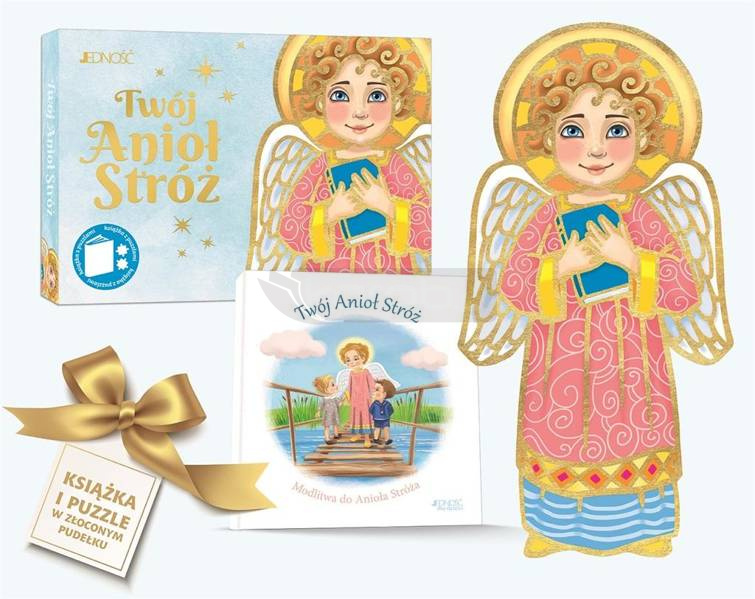 "Twój Anioł Stróż" to piękny upominkowy zestaw w ozdobnym pudełku, idealny jako prezent z okazji świąt, urodzin, chrztu lub innych ważnych uroczystości w życiu dziecka. Zawiera kartonową książeczkę z modlitwą "Aniele Boży" oraz wysokiej jakości 30-elementowe złocone puzzle, z których maluch ułoży postać Anioła Stróża. Pełne ciepła, kolorowe ilustracje zachęcają najmłodszych do sięgania po ten zestaw i zanoszenia ufnej modlitwy każdego dnia.