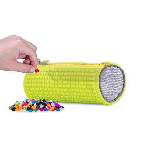 Okrągły wielofunkcyjny piórnik na suwak PIXIE CREW szary, z kreatywnym neonowym, żółtym panelem na całej powierzchni, na którym można tworzyć oryginalne i spersonalizowane grafiki, za pomocą małych silikonowych pikseli. Boki wykonane są z praktycznego, wytrzymałego neoprenu, a wnętrze stanowi nylonowa podszewka. Piórnik zapinany jest na suwak. Wewnątrz znajduje się wystarczająco dużo miejsca nie tylko na przybory szkolne, ale również na inne małe rzeczy, które chcemy mieć pod ręką. Dlatego doskonale sprawdzi się także jako kosmetyczka czy saszetka. Piórnik jest sprzedawany z dodatkowym darmowym zestawem około 100 kolorowych pikseli.